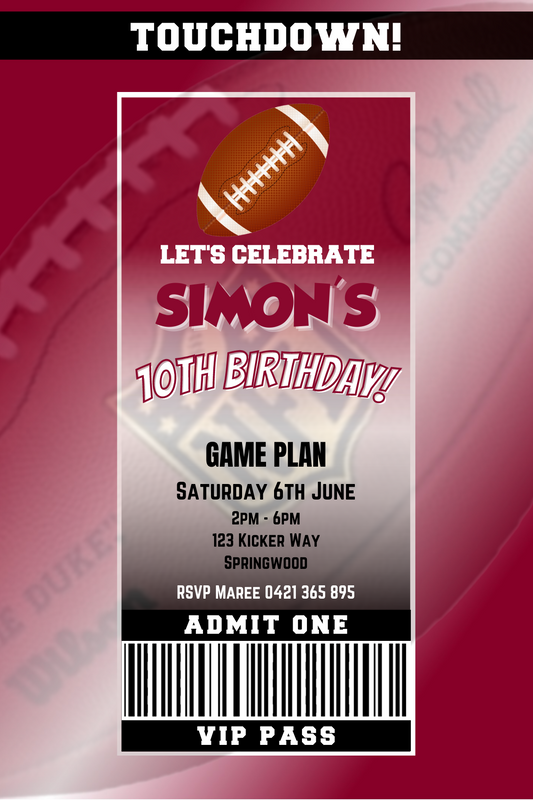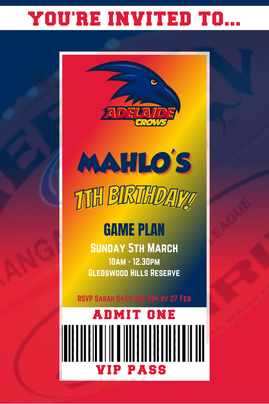 Adelaide Crows VIP Pass Birthday Invitation