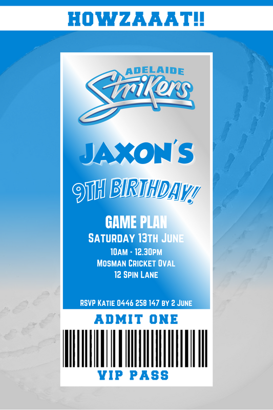 Adelaide Strikers BBL VIP Pass Birthday Invitation