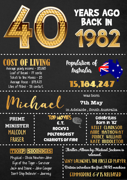 40 years ago back in 1983 Chalkboard Style Poster