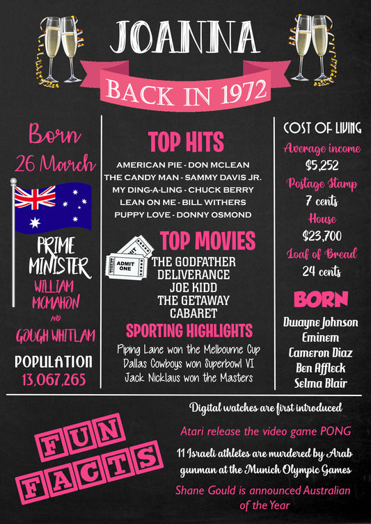 50 years ago back in 1973 Chalkboard Style Poster