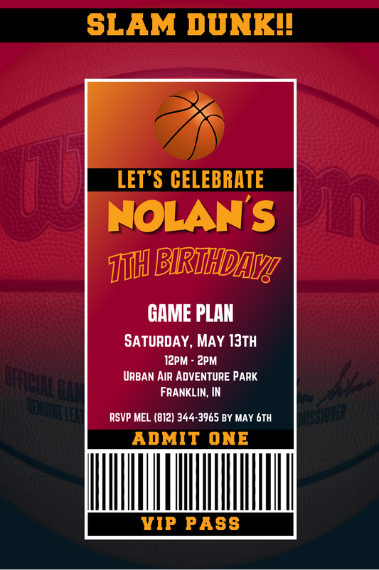 Memphis Grizzlies VIP Pass Birthday Invitation