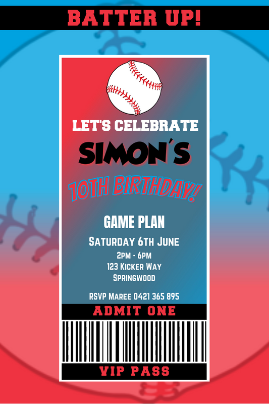 Melbourne Vixens Netball VIP Pass Birthday Invitation