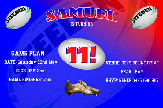 New Zealand Warriors themed VIP Pass Birthday Invitation