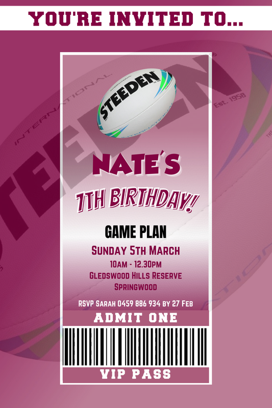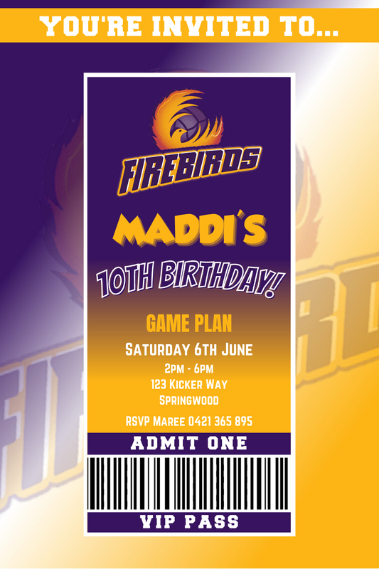 QLD Firebirds Netball VIP Pass Birthday Invitation