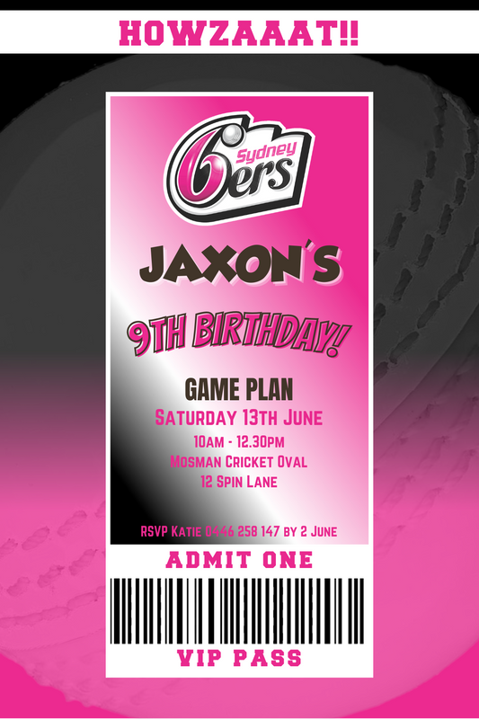 Sydney Sixers BBL VIP Pass Birthday Invitation