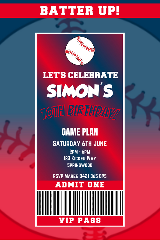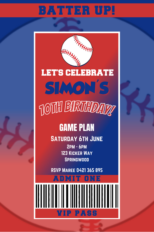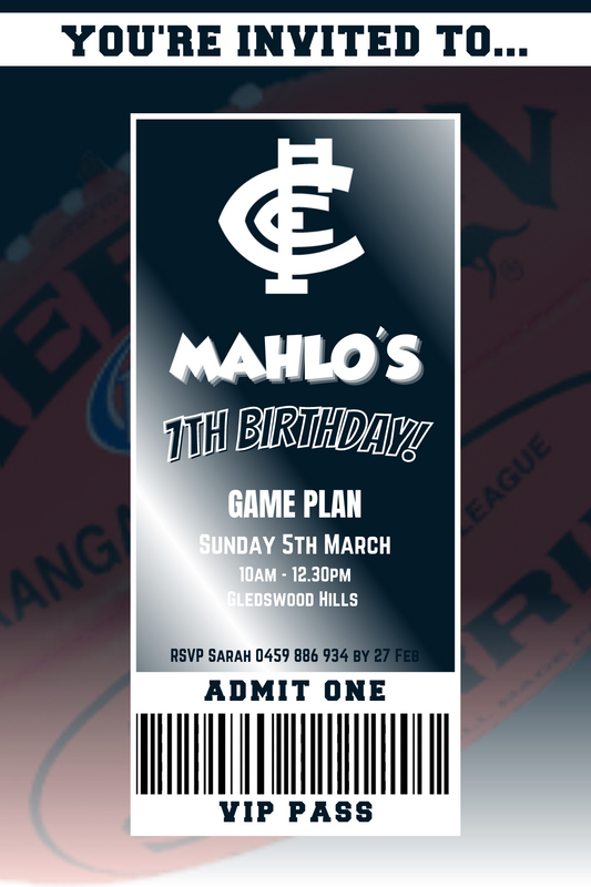 Canterbury Bulldogs themed VIP Pass Birthday Invitation