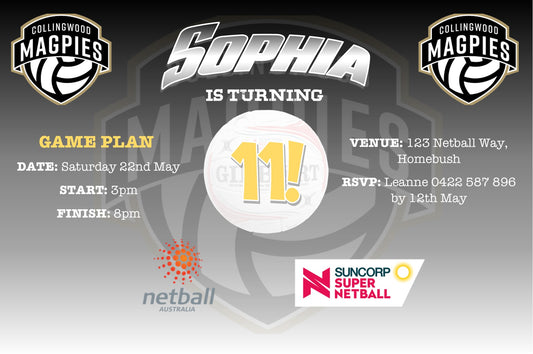 Collingwood Magpies Netball Birthday Invitation