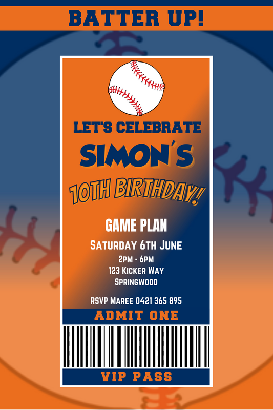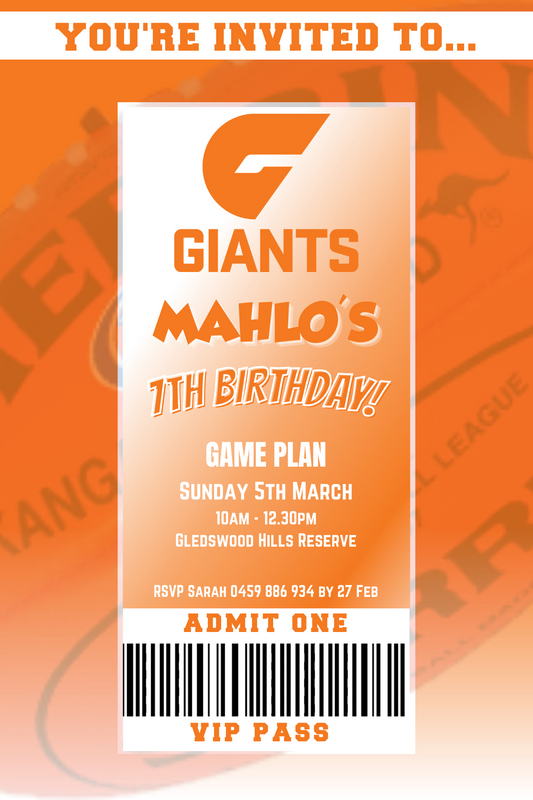 Hobart Hurricanes BBL VIP Pass Birthday Invitation